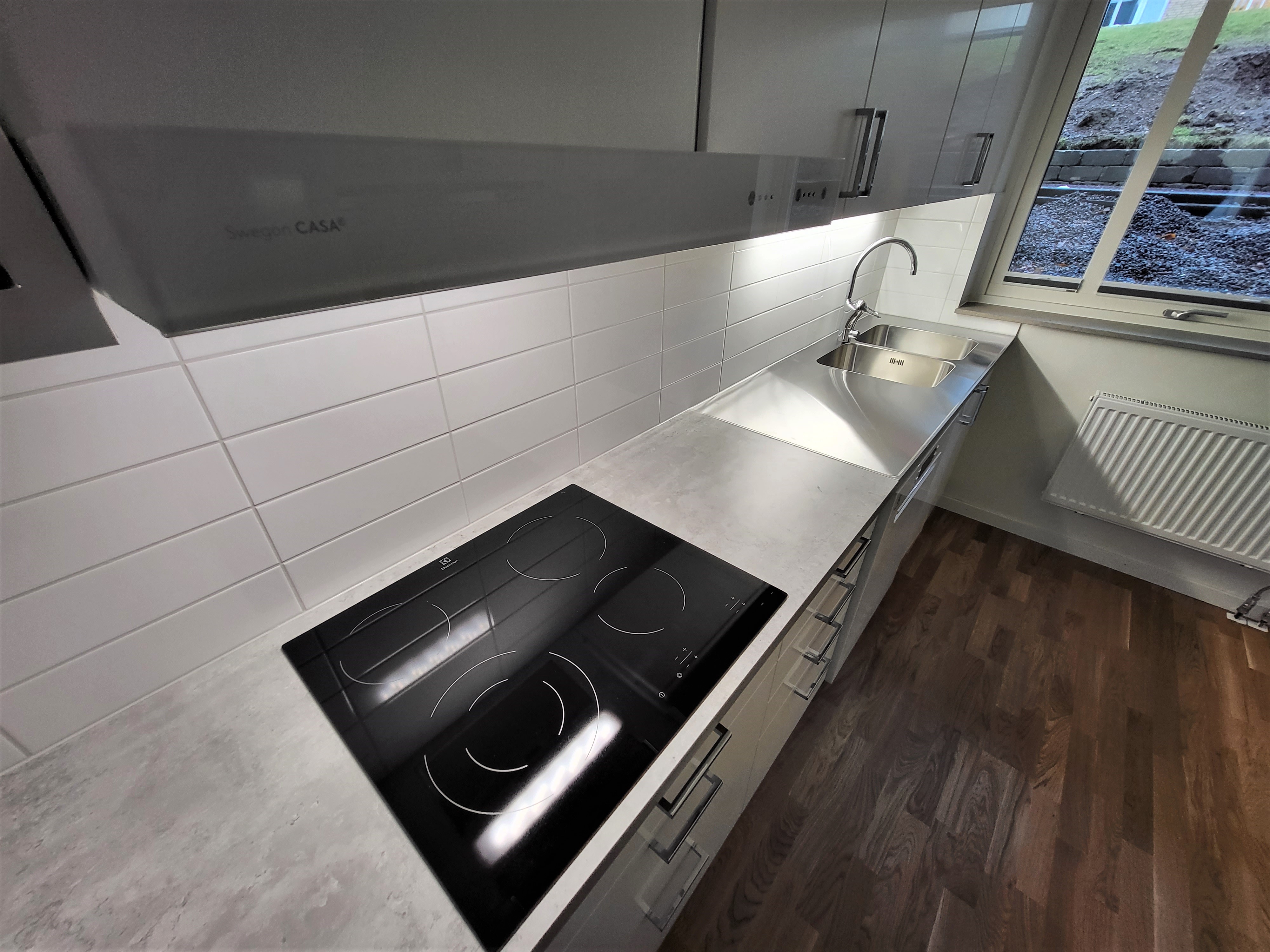 OM LÄGENHETEN Modern bostad nära Åsunden och centrum- Nyproducerad 2024. Hyresrättslägenhet i centrala Ulricehamn. Lägenheterna utrustade med mycket hög standard där exempelvis parkettgolv, tvättmaskin, torktumlare och diskmaskin är standard. Badrum är helkaklat och hall belaggd med klinker. Rymligt kök och moderna vitvaror. Detta är lägenhetens hjärta och med öppen dörr till den franska balkongen kan man verkligen känna stadens puls.